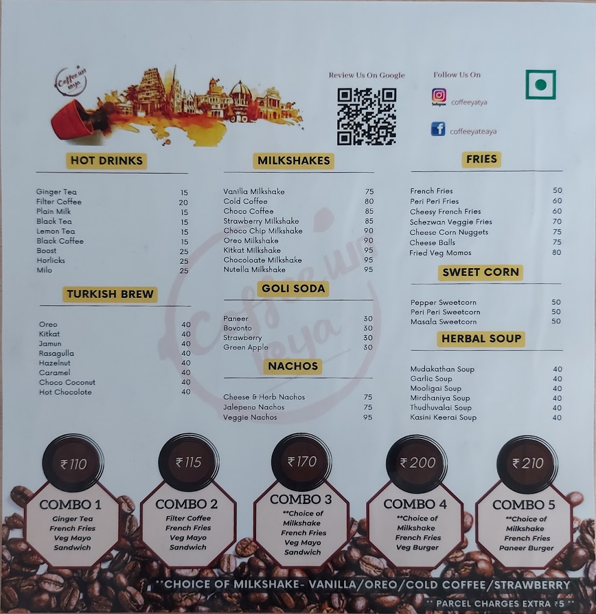 Welcome to Coffeeya Teaya, a gem nestled in the bustling neighborhood of Nanganallur, Chennai. This vibrant cafe stands out for its commitment to offering a delightful vegetarian menu that caters to coffee lovers, tea enthusiasts, and snack aficionados alike.